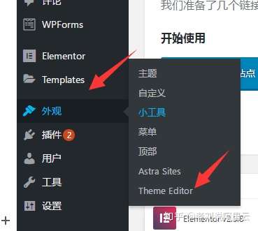 首先登入你wordpress网站后台,找到外观(appearance),点击主题编辑(Theme Editor)。