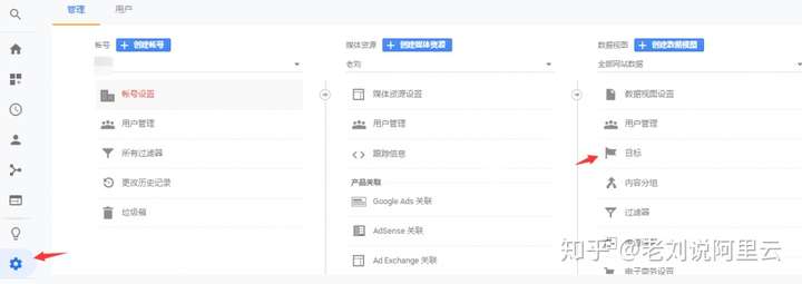 点击左下角的“管理设置”,然后点击“目标”,“添加新目标”。