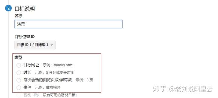 目标网址:如果你是做电商的,那么你可以把结账页面或者加入购物车页面输入,那么每当有人到达这两个页面,你的GA里面就可以统计到。